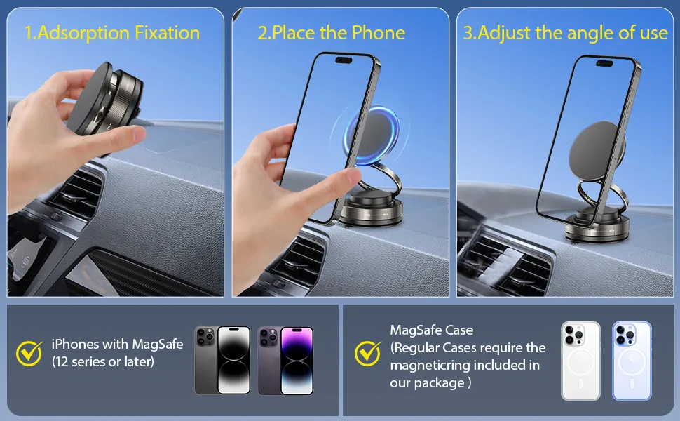 3. POWERFUL MAGNETISM: Built-in N52 magnets strongly absorb your phone, so you don’t have to worry about it falling off even in a variety of complex driving environments