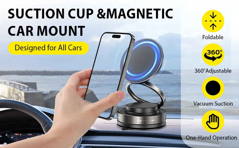 MY[Ready Stock] 2025New 360 Rotation Vacuum Suction Cup Phone Holder Foldable Magnetic Magsafe Car Phone Mount for Gym/Mirror/Smooth Surface